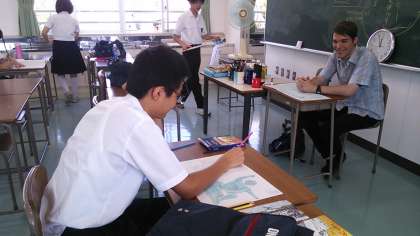 美術部は、秋に行われる五校フェスタの周知ポスターを企画・製作中です。