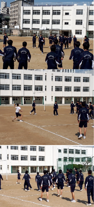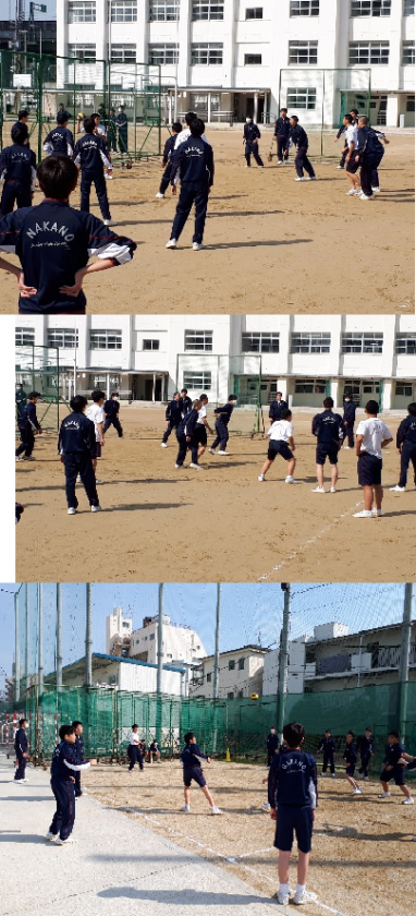 3年男子は、グラウンドでドッジボール大会でした。グラウンドがぬかるんでいたので、早くから登校、水抜きをしてくれた、やる気満々生徒もいました。みんな元気にプレイをしていました。