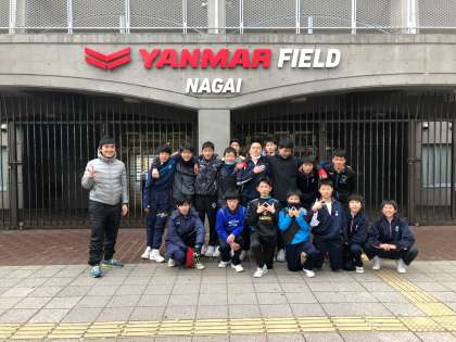 前日に雨が降り、心配だった天気も持ち直した中、ヤンマーフィールド長居でフレンドリーマッチに参加しました。これは田辺地区の青少年指導員の方々が中心となり、地域で活動する子ども達にサッカーを通して成長して欲しいという目的で開催されました。