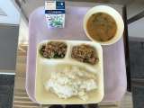 豚肉のしょうが焼き・サツマイモのみそ汁・なのはなのおひたし・ごはん・牛乳