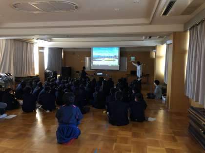 1年生は一泊移住の全体での説明を多目的室でしていました。