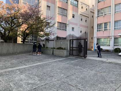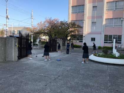 今日は女子バスケットボール部が正門付近の清掃活動をしてくれていました!!