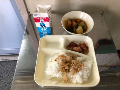 今日の給食! 公開日 2019/05/08 更新日 2019/05/08 学校日記 今日の給食は ごはん、牛乳、鶏肉のてりやき、じゃがいもとあつあげの煮物、ごまかかいため です。いただきます!! いいね(0)