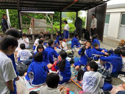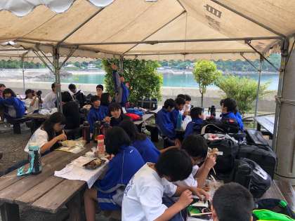 1年生全員目的地の日高青少年自然の家に無事到着しました。ただいま昼食中です。