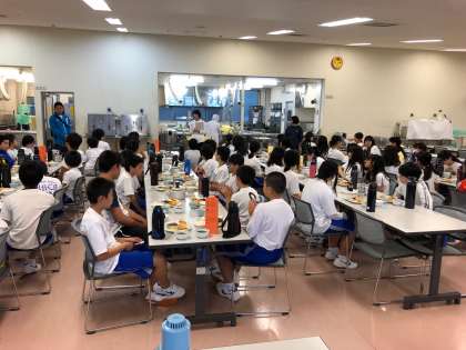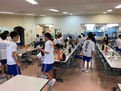 一日の活動も終わり、みんな揃って夕食です。この後夜のレクリェーション(室内オリンピック)があります。続きはまた明日お知らせします。