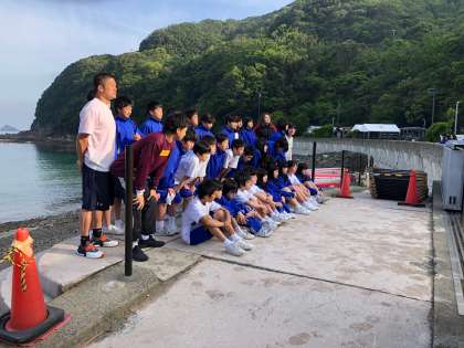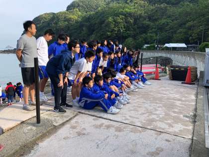 朝の集いの後、太平洋をバックにクラスごとで集合写真を撮りました。今日の天気は快晴です。