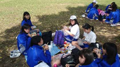 天気もよく、みんなで集合写真を撮って、昼食(お弁当)タイムです!!