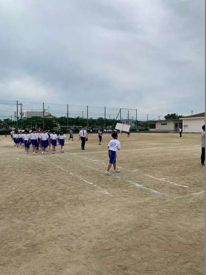 体育大会の全体練習(入場行進や開会式の動き)がおこなわれました。