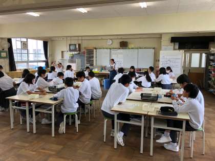 4限目に1年1組で教育実習生の美術の授業がありました。