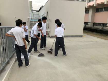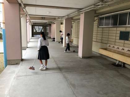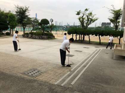 水曜日の朝、バドミントン部と水泳部が清掃活動をしていました。