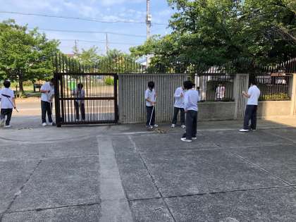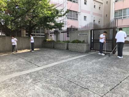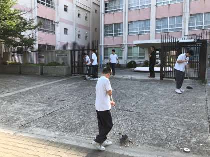 男子バスケットボール部が朝の清掃活動をしていました。ありがとう!