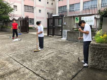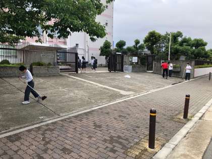 朝の正門付近を美化委員会とボランティアの人たちが清掃活動をしていくれていました!