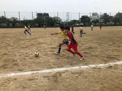 サッカー部はリバースカップをしています。赤のユニホームが矢田中学校です!