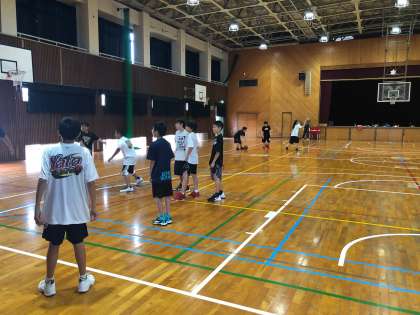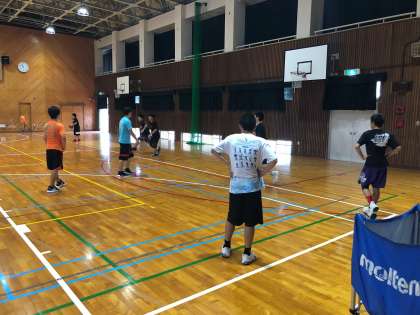 男子バスケット部は2か所に分かれて練習していました。月曜日には公式戦が控えています!奥では女子バスケット部が練習していました!