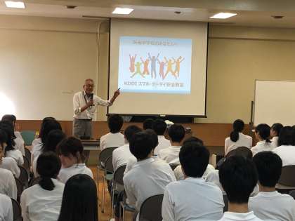 6限目を使って、KDDIより講師を招き、スマホの危険と正しい使い方を再確認しました。今の自分のスマホや携帯の使い方を見直すよいきっかけになったと思います!