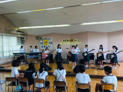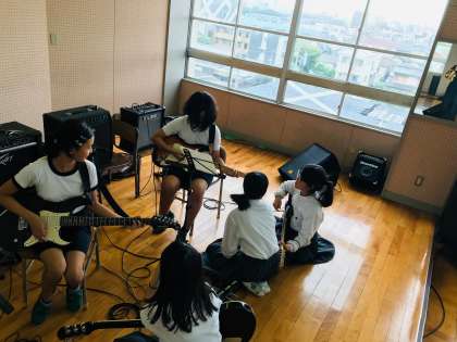 写真は軽音楽部の体験の様子です。中学生達は来てくれてとても嬉しそうでした。