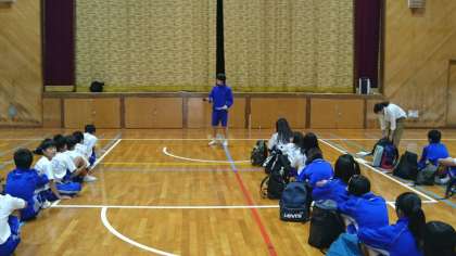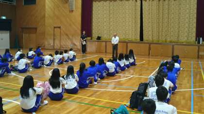 体育館で出発式が行われ、代表によるあいさつや、校長先生の話など行われました。