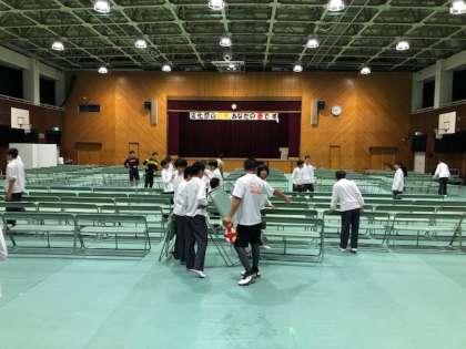 午後から文化祭の会場、周辺清掃等の準備が行われています。発表できる会場がないと文化祭はできません。会場設営は主に1年生が担当しています。よろしくお願いします!!