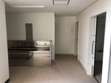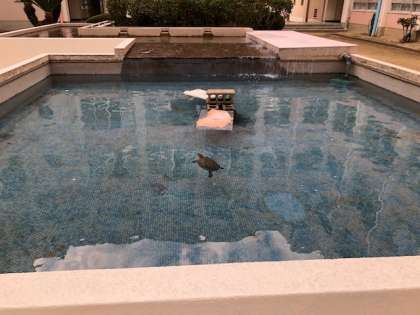 7月から約4カ月間のトイレ改修工事が終わり、最終点検後、来週から使用となります。また、中庭の池の循環器の改修工事が終わり、きれいな水で生き物が泳いでいます!!