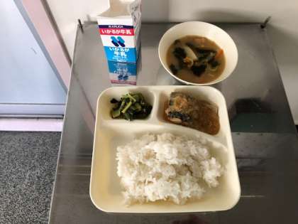 今日の給食は、ごはん、牛乳、さばのみぞれかけ、みそ汁、こまつなの煮びたしです。寒くなってきましたが、2年生は職場体験で貴重な体験をしてほしいです。いただきます!!