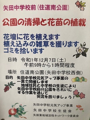 学校前の公園を地域の方々と中学生が一緒に行いました!