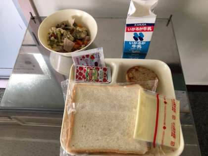 今日の給食 公開日 2019/12/11 更新日 2019/12/11 学校日記 今日の給食は食パン、牛乳、豆腐ハンバーグ、カリフラワーのスープ煮、スライスチーズ、いちごジャムです。いただきます! いいね(0)
