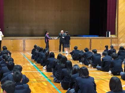 今日は税の作文で入賞した生徒の表彰がありました。