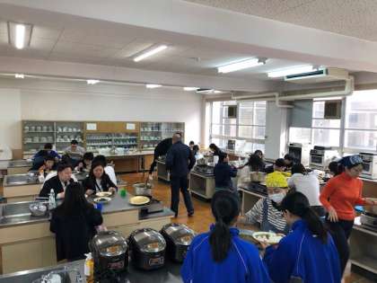 甘口、辛口カレー、ほうれん草の炒め物、リンゴなど今日の子ども食堂もにぎわっています。