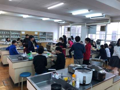子ども食堂 第6回 公開日 2020/02/15 更新日 2020/02/15 学校日記 今年度最終の子ども食堂が開催されて、たくさんの部員や土曜寺子屋参加者がカレーライスを食べています。 いいね(0)