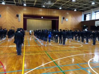 今日は、表彰と校長先生より今朝から体育館2階フロアの清掃をバスケットボール部が行ってくれていたことも含め、日頃の清掃活動についての話、生徒会より今月の生徒会目標についての話がありました。