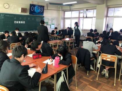 NHKの教材を使い、班で積極的に意見を出し合っていました。