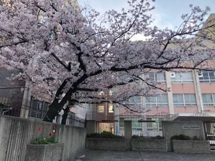 正門の桜は新学年の皆さんを迎える準備はできていますが、明日4/8の始業式は新型コロナウィルス感染予防のため延期です。延期日は現在未定です。