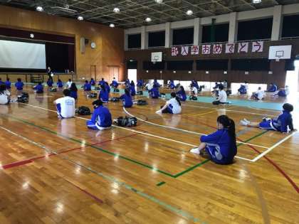 3年生は最後に体育館に入って、学年集会と軽運動を行いました。