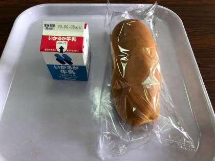 今日の給食はコッペパンと牛乳の簡易給食です。
