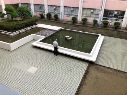 カメも昼食です。学校長は優しい眼差しでカメに食材を与え、見届けています。