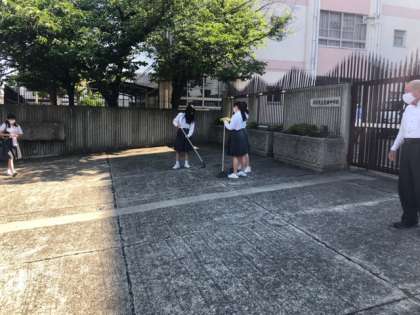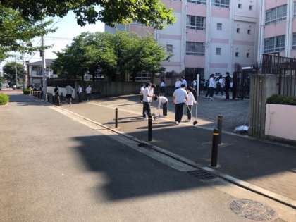 バドミントン部が正門付近を清掃してくれていました。ありがとう!!