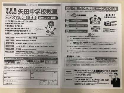 本日申込み用紙を配付します。確認いただき、7/15までに学校までに提出してください。8/4より開校の予定です。