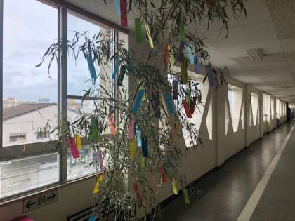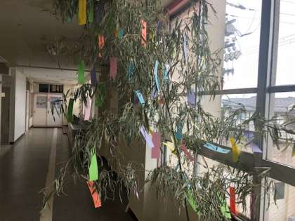 あいにくの天気ですが、今日は七夕です。上の写真から1年、2年、3年生です。