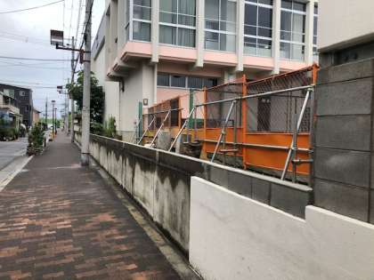 7月から10月頃まで学校東側のフェンス改修工事が行われています。ブロック塀をフェンスに取り換える工事となっており、東側が現在仮のフェンスになっています。