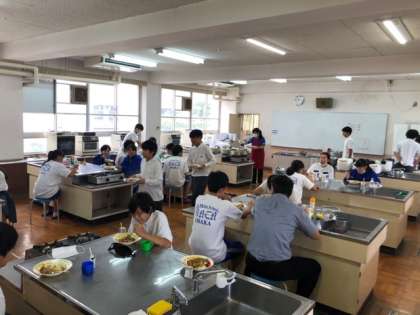 調理室でカレーが振る舞われています。 しっかり食べてしっかり勉強しましょう!