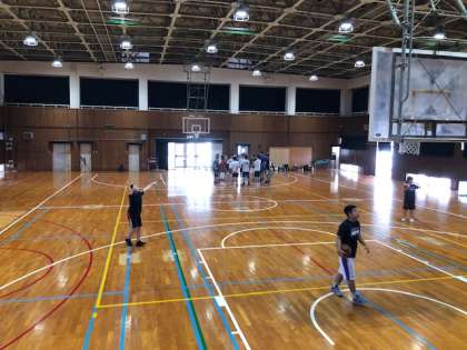 朝から体育館や校舎内、校舎周り、大和川河川敷、他中などさまざまな場所で活動しています。写真は体育館です。
