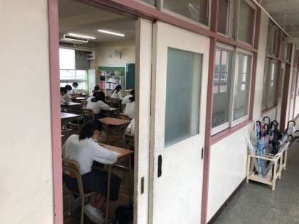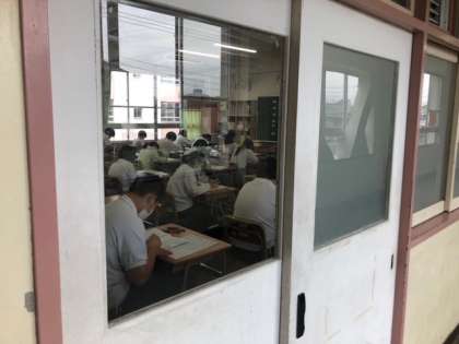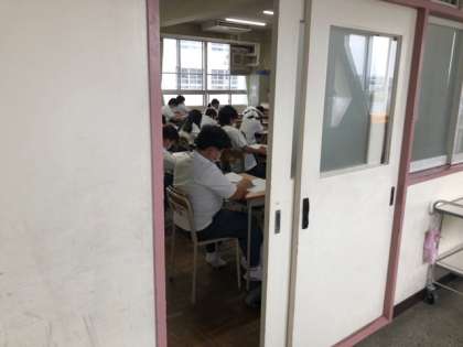 3年生は実力テスト、1,2年生は夏休みの課題範囲を含めた課題テストを実施しています。午後からもテストです。学習の進捗を把握して次につなげてほしいです。