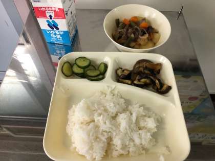 今日の給食です。今日はご飯、いただきます。今週もごちそうさまでした。