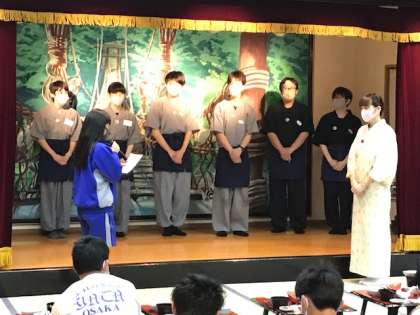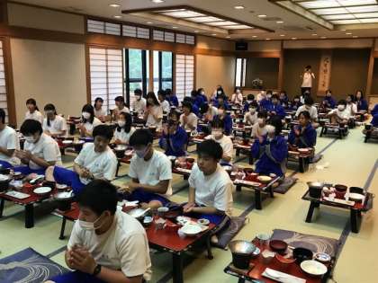 食事の後に退所式が行われました。一泊ありがとうございました。このあとかずら橋へ向かい学級写真を撮影します。