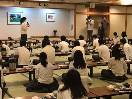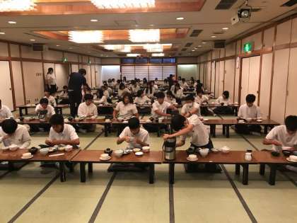 皆、眠たそうですが、元気です。朝食をしっかり食べて残り1日しっかり思い出を作りましょう。朝食後、退館式が行われました。