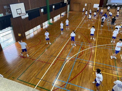 2年生は、体育館で、学年全員でバレーボール大会を行いました。