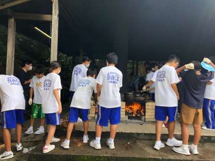 昼は、班に分かれて野外炊飯(カレーライス)です。