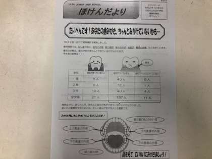 今回のほけんだよりは先日行われた歯科検診の結果が掲載されています。配られたら是非読んでみてください。