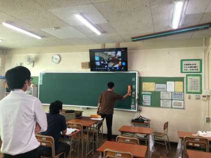 広いホール等への出張の先生方がほとんどですが、今回、密集を避けるために、リモートの研修会を実施している教科もあります。数学科のリモートでの模擬授業と研修会の様子です。