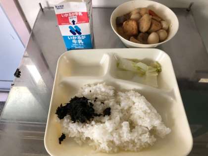 今日の給食です。関東煮です。いただきます。
